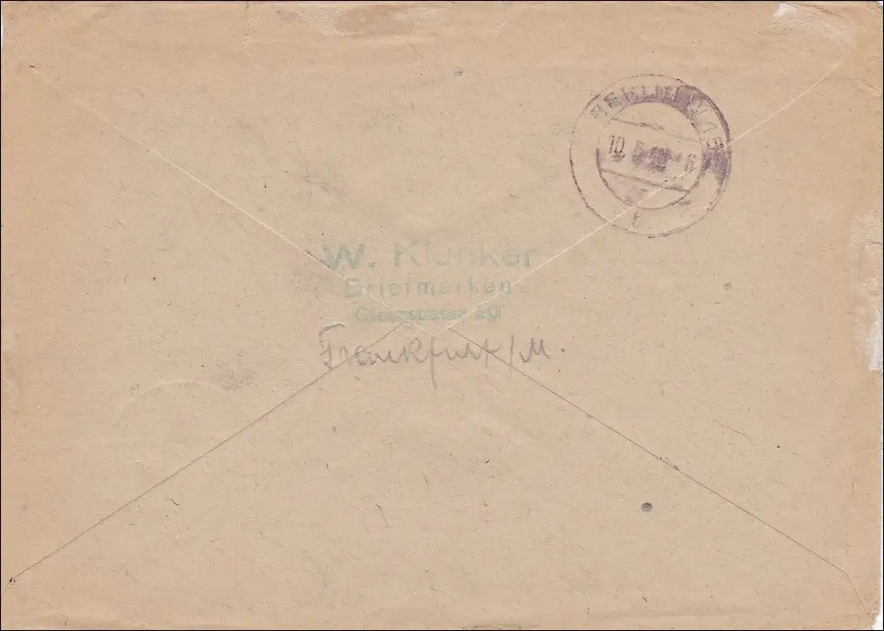 BiZone: recommandé de Francfort/Main Nord-Est à Berlin en 1949, 3x MiNr. 9