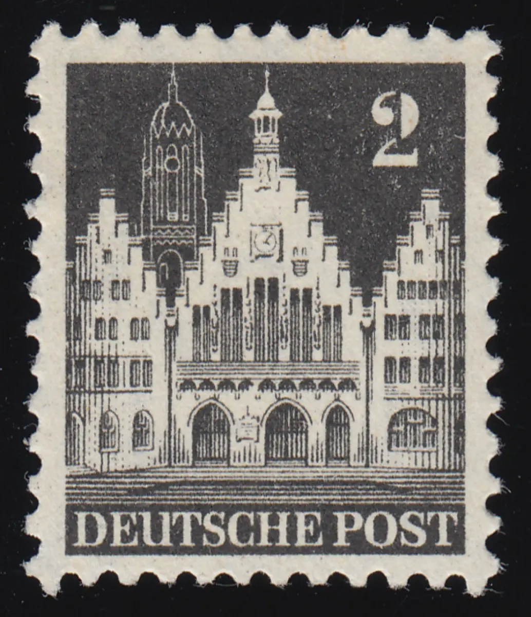 Bizone 73 XF Bauten 2 Pf., weit gezähnt, postfrisch **