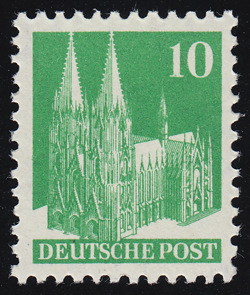 Bizone 80V XF Bauten 10 Pf., grün, weit **