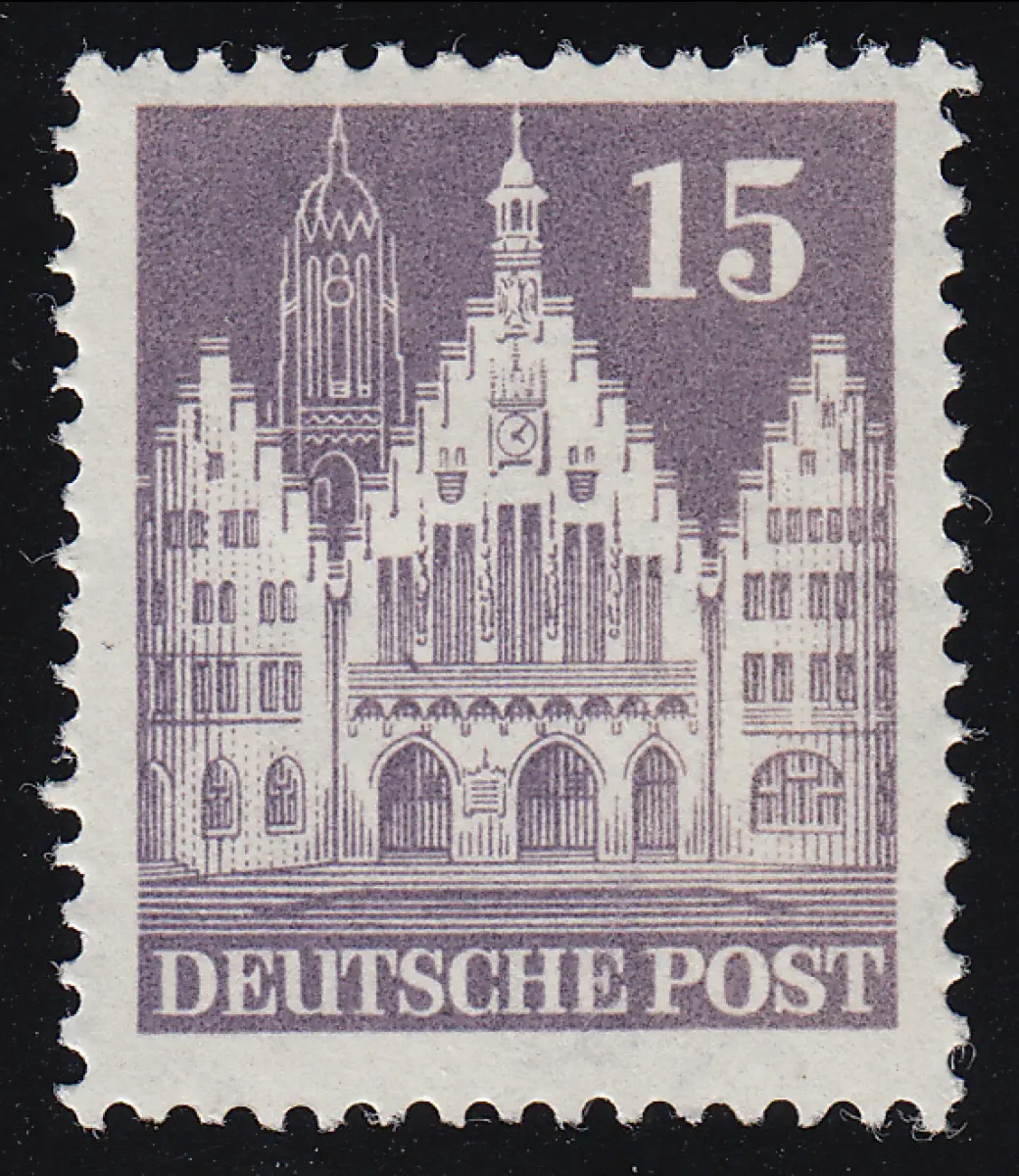 Bizone 82a WA Bauten 15 Pf., grauviolett, eng **