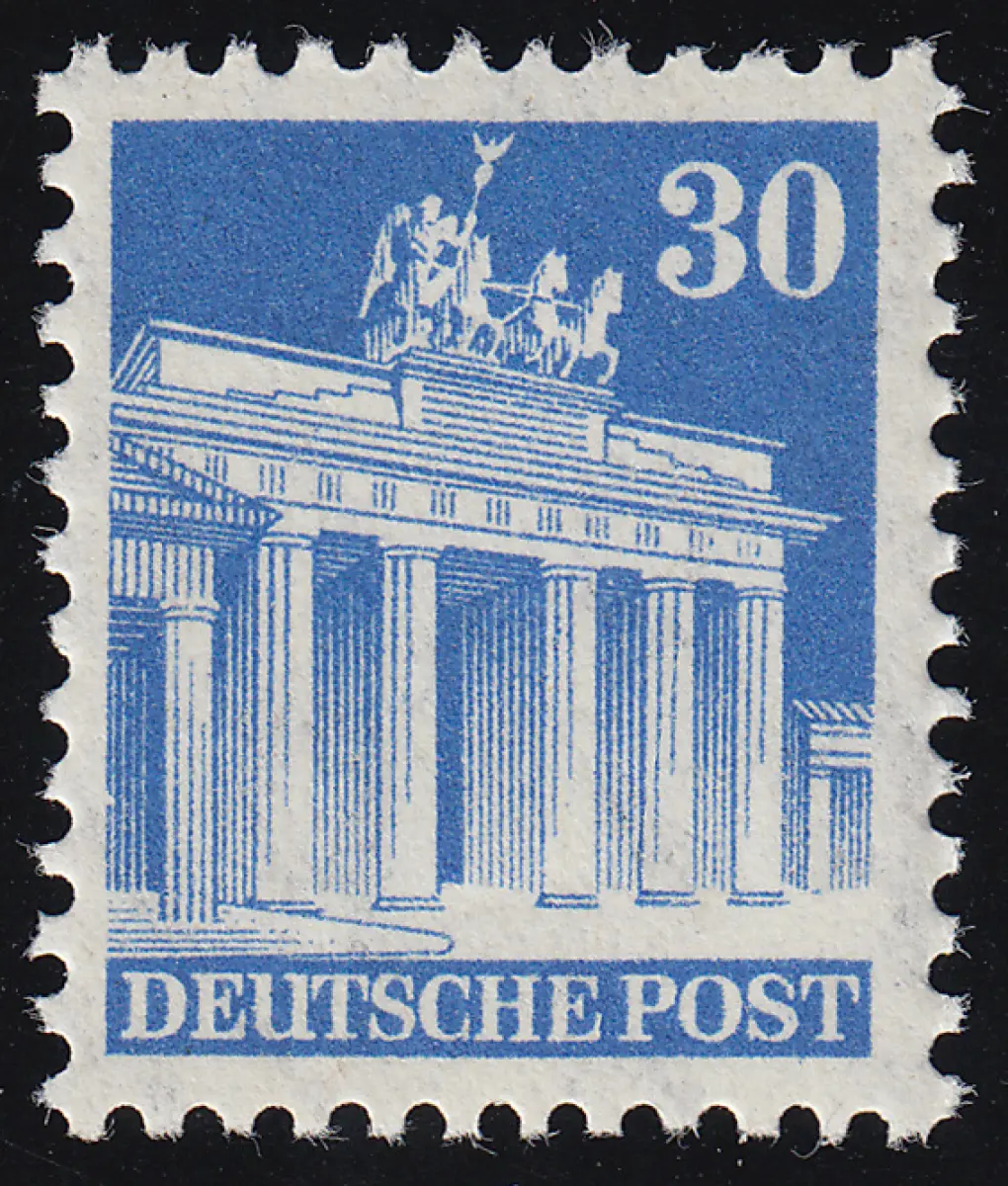 Bizone 89 XF Bauten 30 Pf., blau, weit **