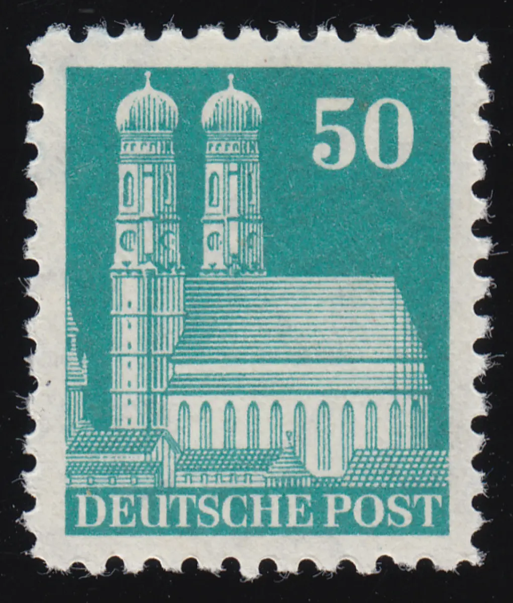 Bizone 92 WB Bauten 50 Pf., blaugrün, weit gezähnt **