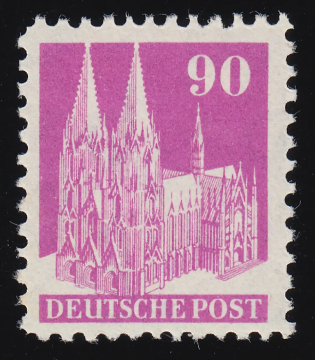 Bizone 96 III WE Bauten 90 Pf., lila, weit **