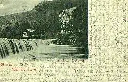 Blankenburg. Wasserfall mit Lösches Hall - Gelaufen 1899. (NPLZ 07422)