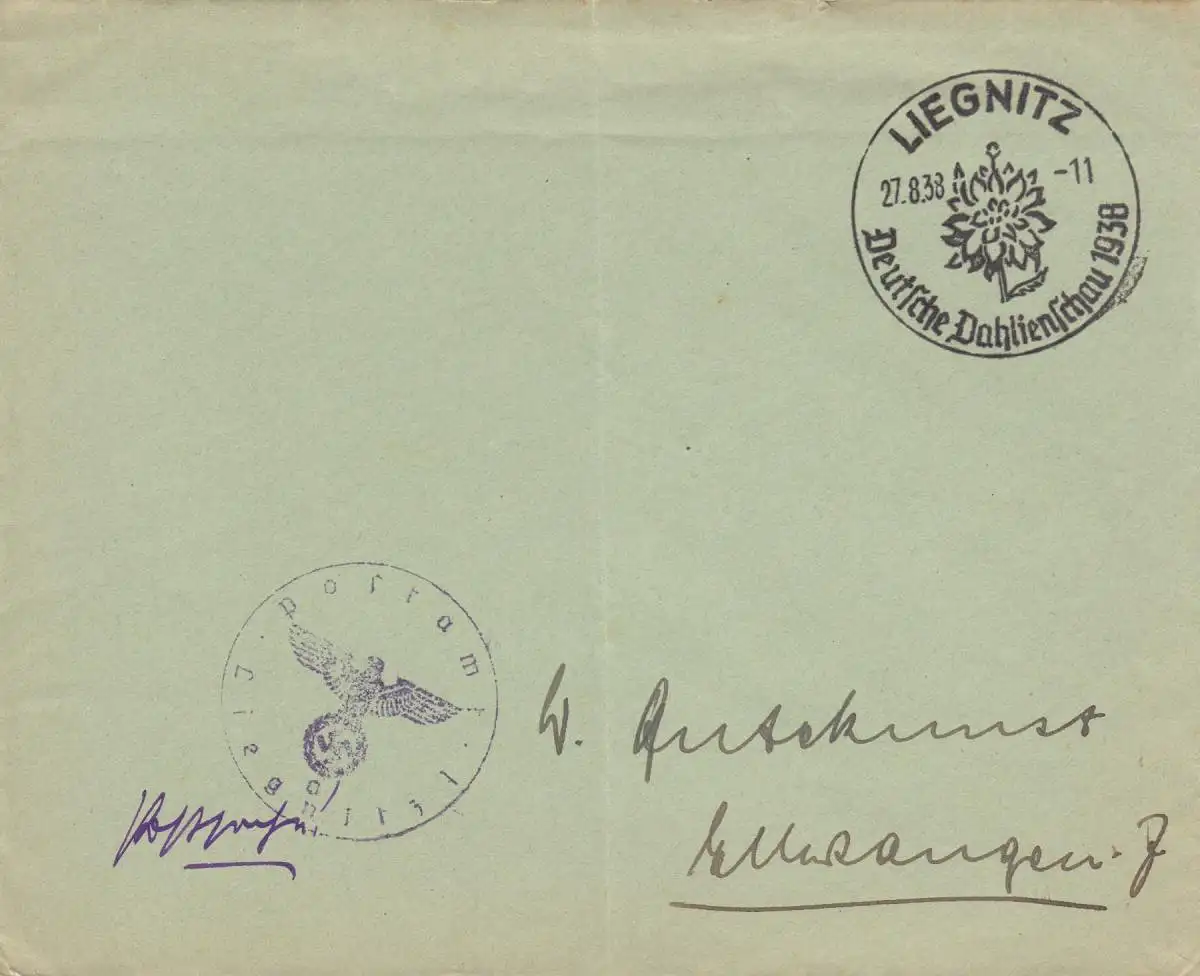 Blanko Kuvert 1938: Liegnitz: Deutsche Dahliaschau 19 38