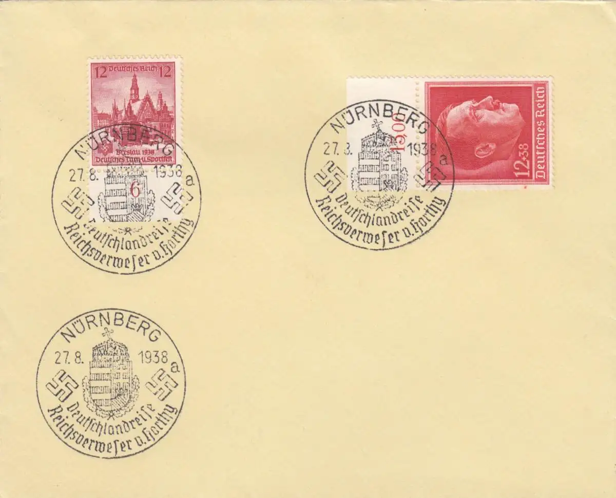 Blanko Tampon spécial 1938: Nuremberg: voyage en Allemagne Reichsweser Horthy