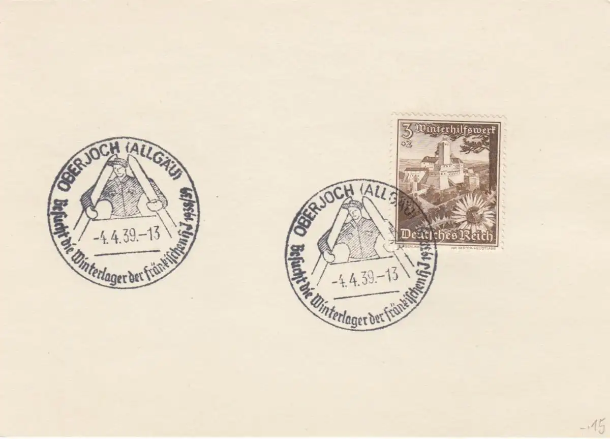 Blanko Tampon spécial 1939: Oberjoch: visite d. Camps d'hiver français