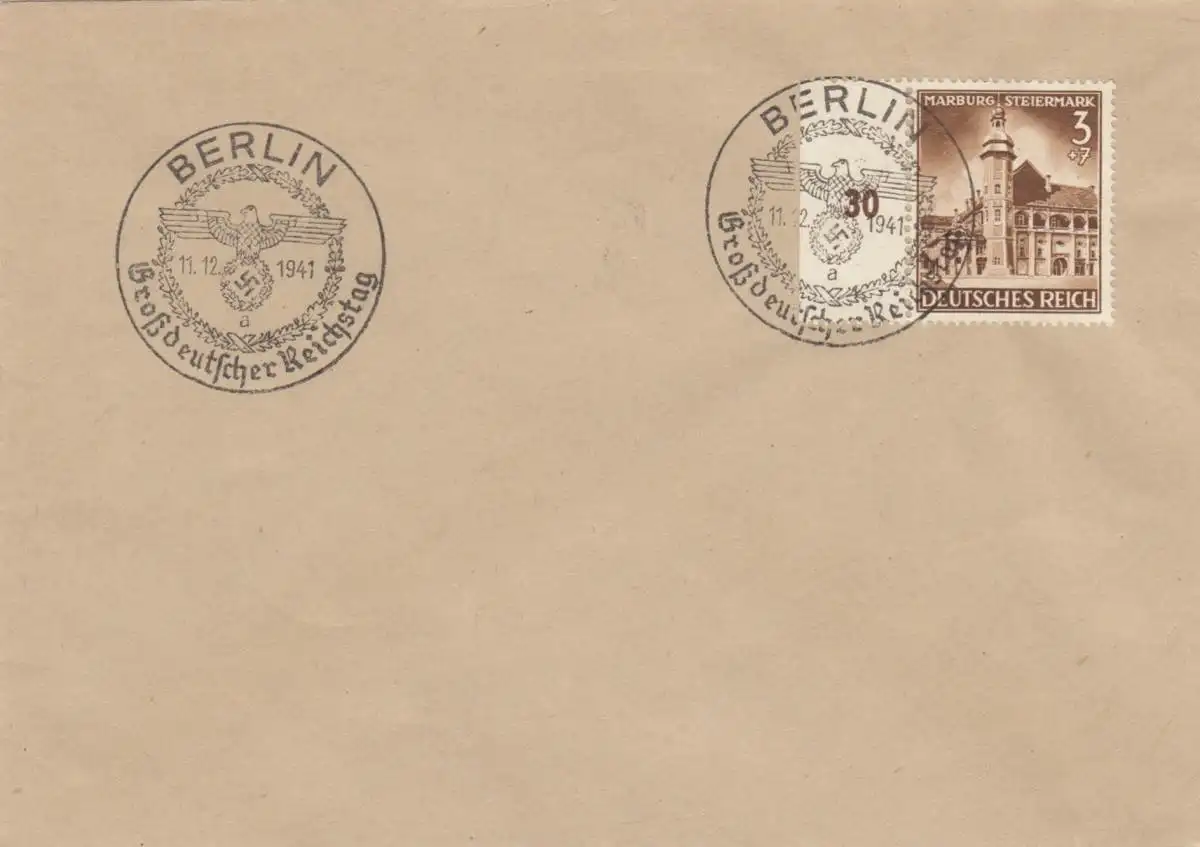Blanko Certificat spécial de timbre 1941: Berlin: Grand Reichstag allemand 11.12.1941