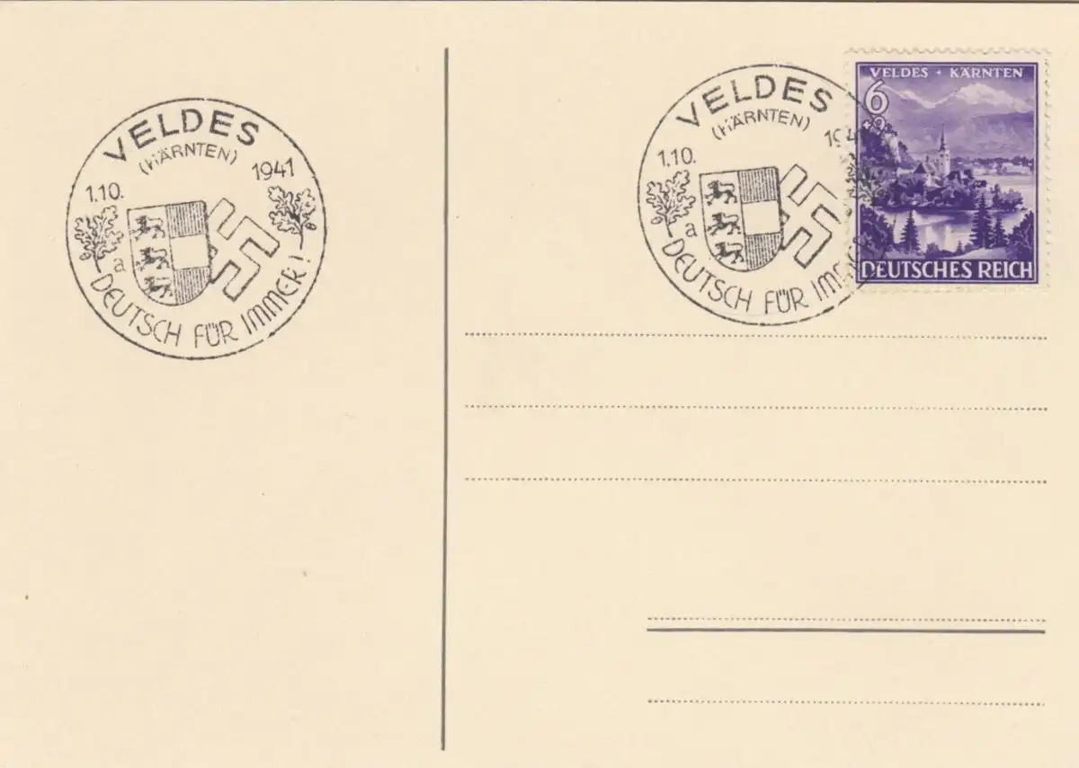 Blanko Certificat spécial de timbre 1941: Veldes (Carteaux): Allemand pour toujours 1.10.1941