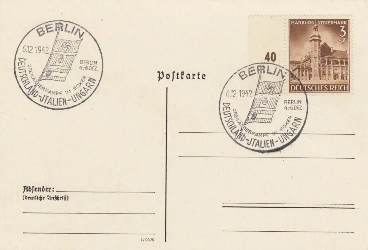 Blanko Tampon spécial 1942: Berlin: Trinationale boxe, allemand. It. Ung.