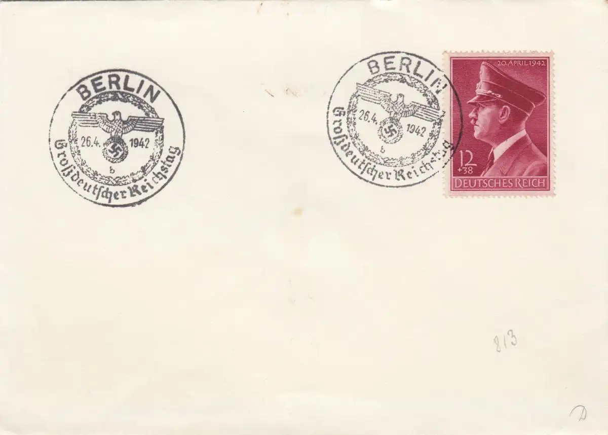 Blanko Certificat spécial de timbre 1942: Berlin: Grand Reichstag 26.4.1942