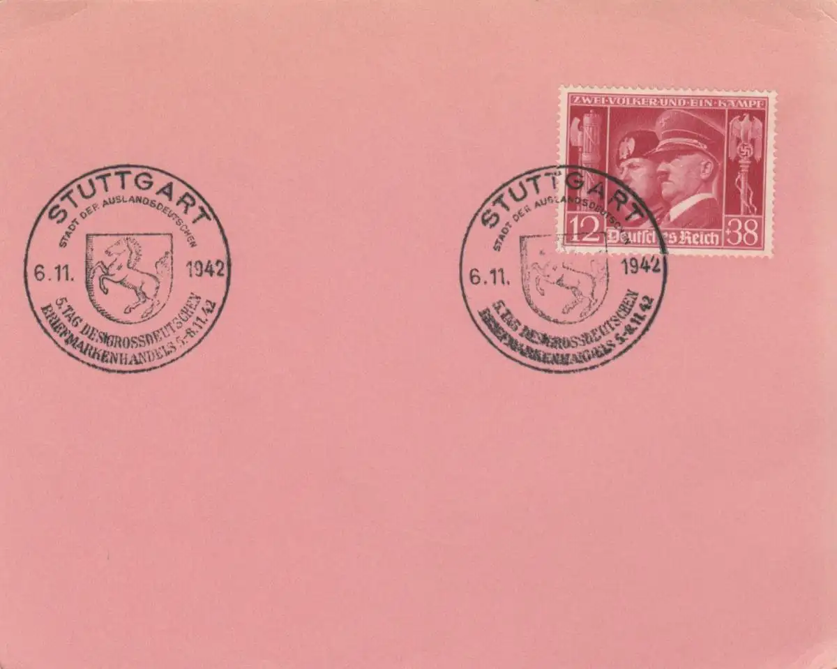 Certificat spécial de timbre blanc 1942: Stuttgart: 5ème jour du Grand Marché des Timbres