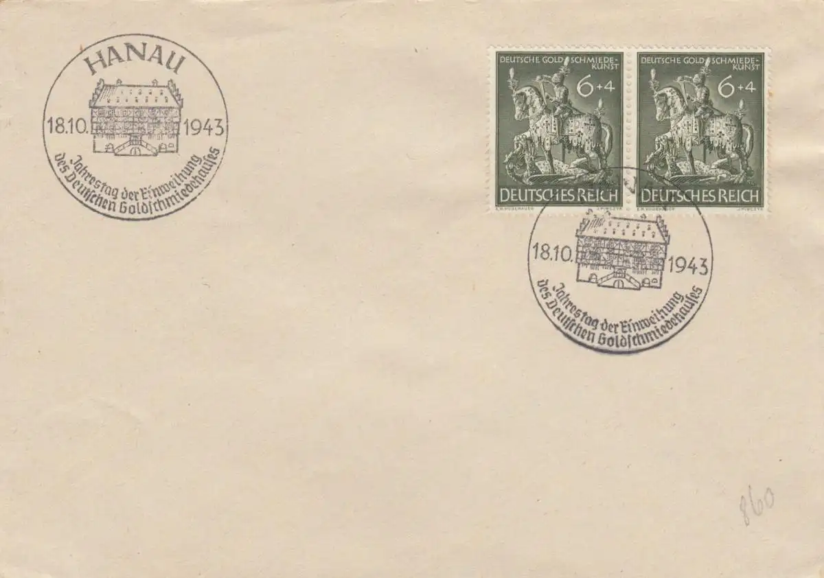 Blanko Tampon spécial 1943: Hanau: Anniversaire. Inauguration Deut. Maison d'orfèvrerie