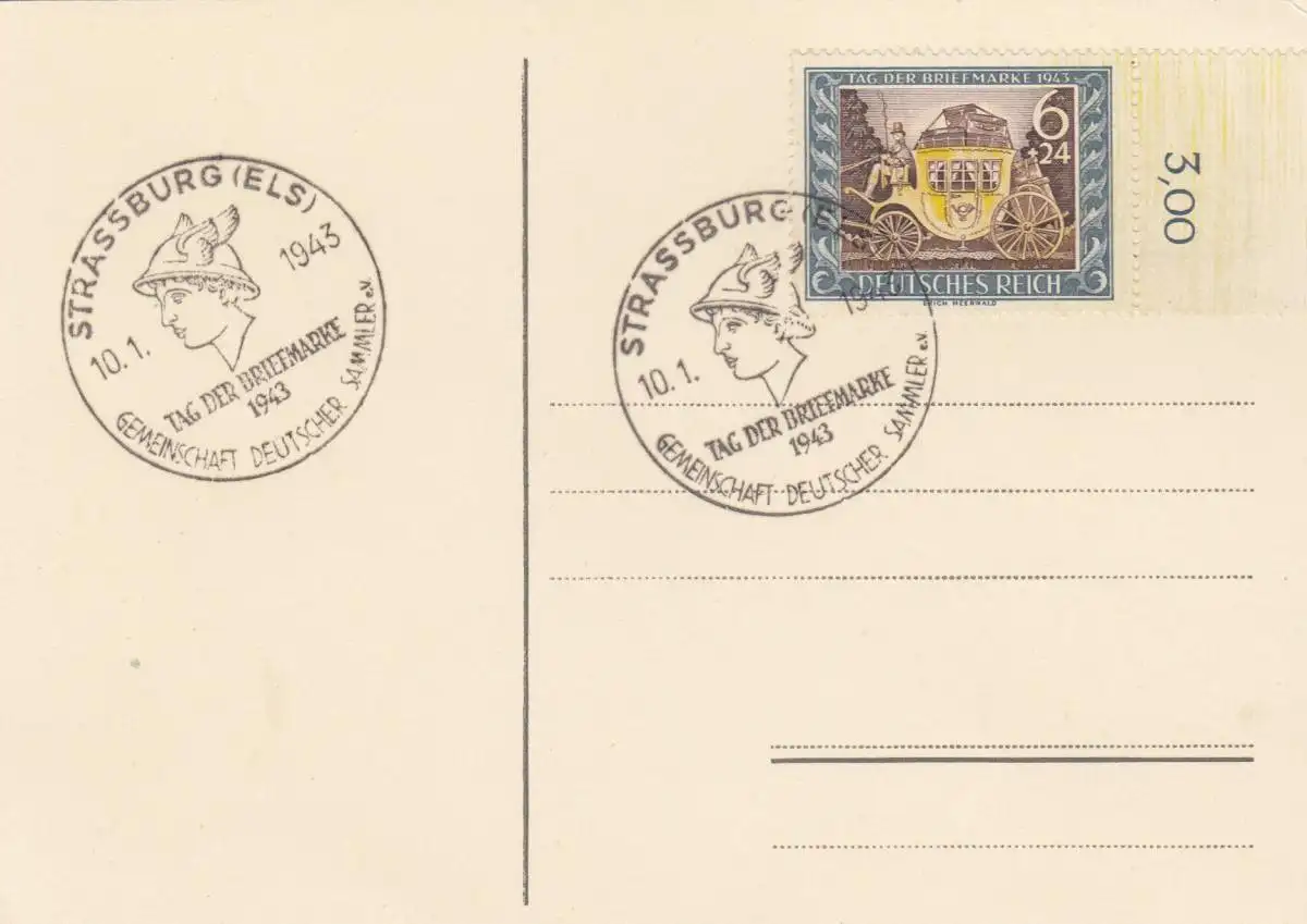 Blanko Tampon spécial 1943: Strasbourg: Jour d. Marque de brie, Gem. collectionneurs