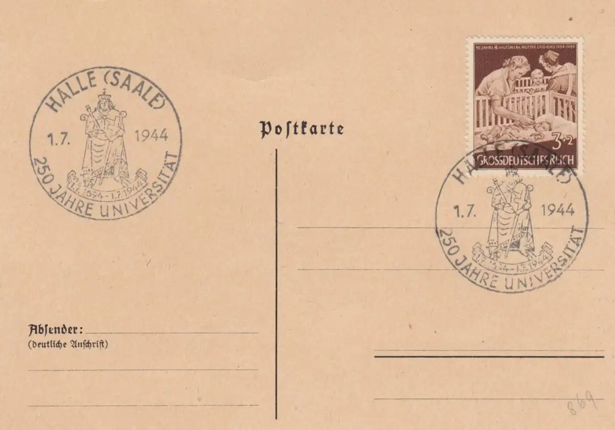 Certificat de timbre spécial Blanko 1944: Hall (Saale): 250 ans Université