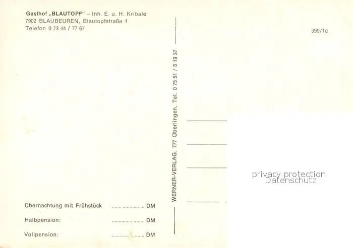 Blaubeuren Gasthof Blautopf Blaubeuren postalisch nicht gelaufen nach 1965 Erhaltung siehe scans [WerneD78] WernPID7