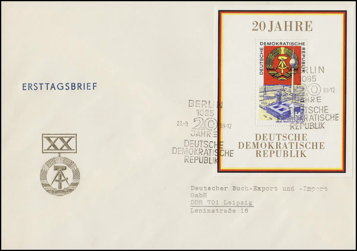 Bloc 28 anniversaire 20 ans RDA - Block sur bijoux-FDC Livre-Export ESSt Berlin