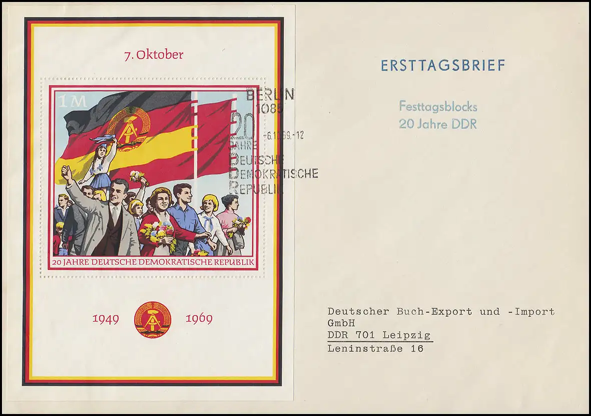 Bloc 29 anniversaire 20 ans RDA 1969 sur bijoux-FDC Livre-Export ESSt Berlin
