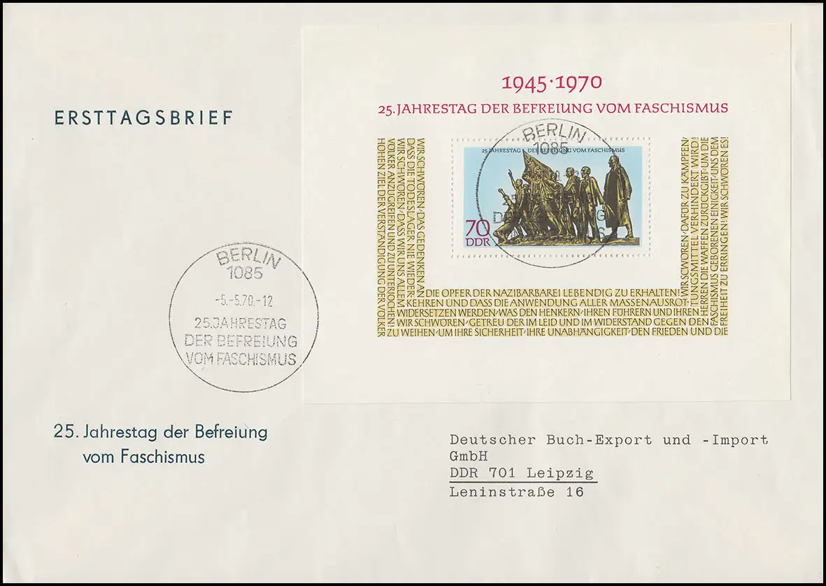 Bloc 32 anniversaire de la libération du fascisme sur le FDC de bijoux ESSt Berlin