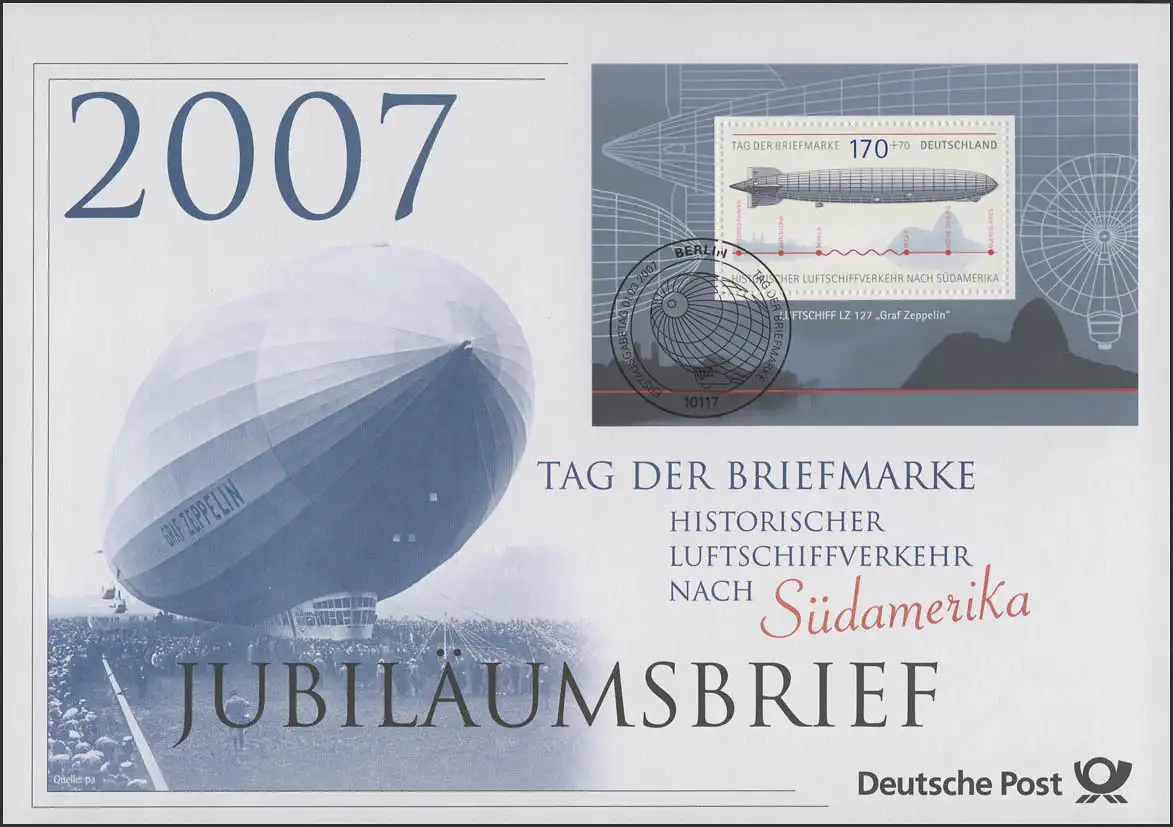 Bloc 69 Jour du timbre & Aéroport Zeppelin 2007 - Lettre d'anniversaire