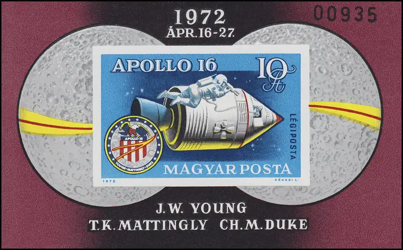 Bloc 93B Vol spatial APOLLO 16 - Capsule spatiale 1972, bloc non-denté **