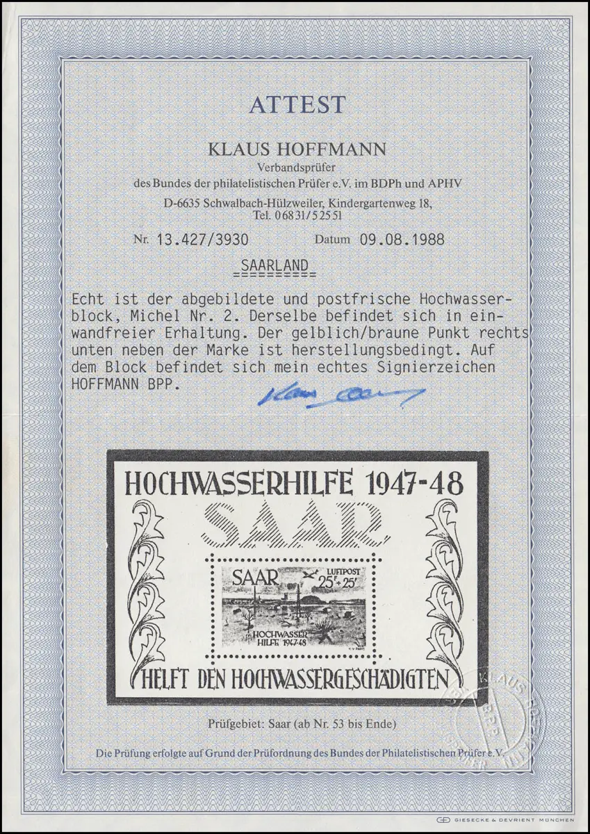 Block 1/2 Hochwasserhilfe Blockpaar, postfrisch **, jeweils Befund BPP