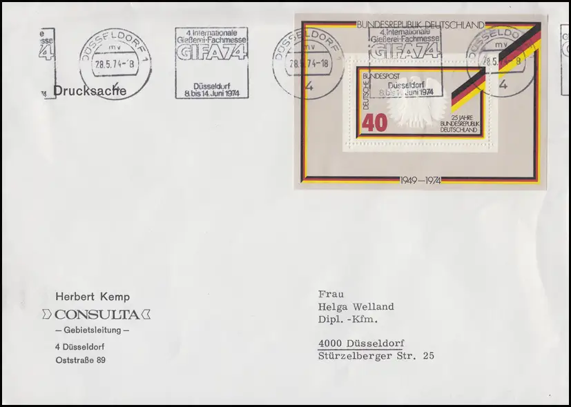 Bloc 10 sur l'impression locale Düsseldorf GIFA 74 - Salon de la fonderie 28.5.74