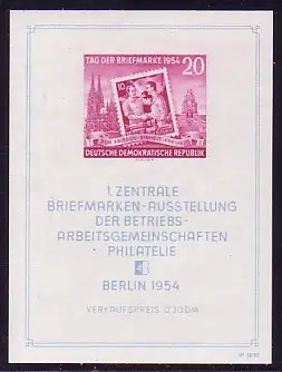Bloc 10XI Exposition Philatelie Berlin 1954 avec WZ XI, frais / ** / MNH