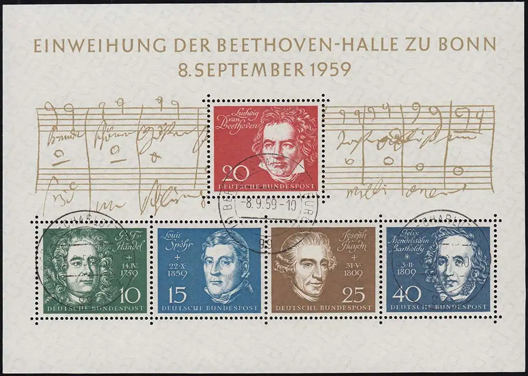 Bloc 2 Beethoven 1959, jour - cachet du premier jour 8.9.1959
