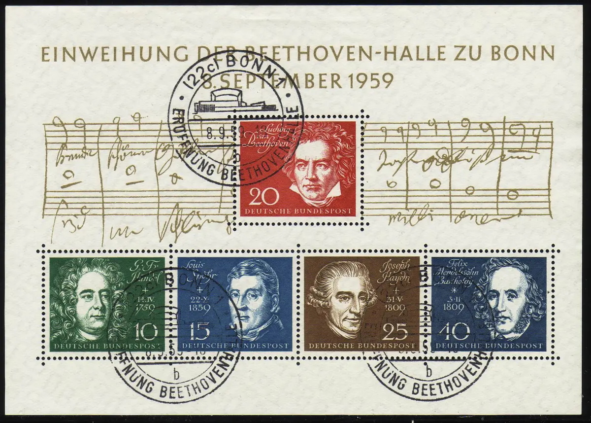 Bloc 2 Beethovenhalle 1959, ESSt Bonn, 3x lettre b)