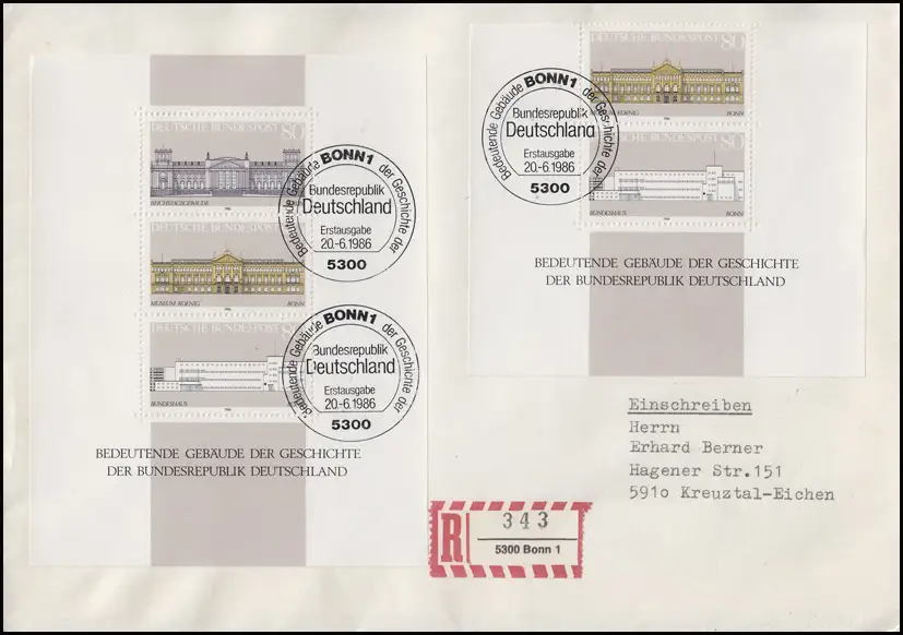 Bloc 20 Démocratie avec partie 1288-1289 portog. sur R-FDC ESSt Bonn 20.6.86
