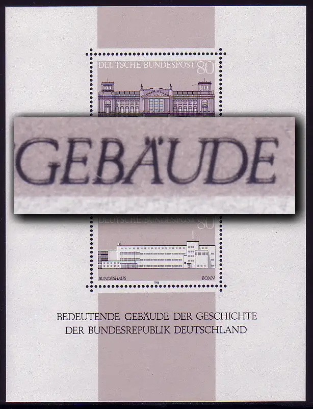 Bloc 20DD Démocratie 1986 avec double impression de la couleur noir **