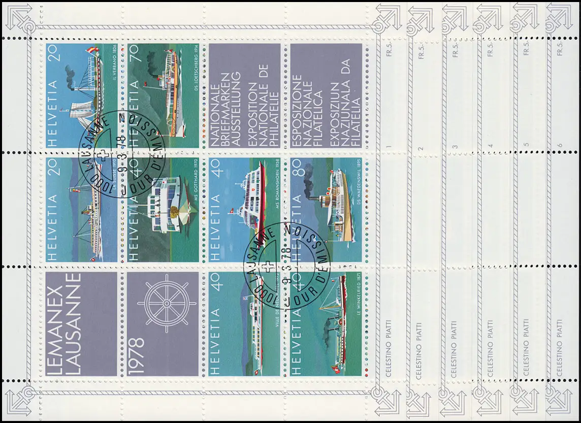 Bloc 23 Exposition LEMANEX Lausanne avec le numéro 1-6 complet, set ET-O 9.3.1978
