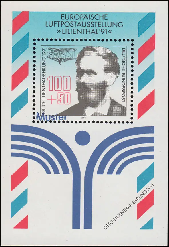 Bloc 24 Exposition de courrier aérien LILIENTHAL'91 à Dresde, impression de motif