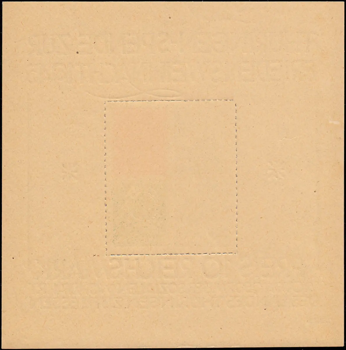 Schöner ungestempelter Block 2t der Drucktype II (abgeflachte Null in der 10) mit kleinem Gummifehler am linken Blockrand, ansonsten einwandfrei mit Originalgummierung, Originalmaße.