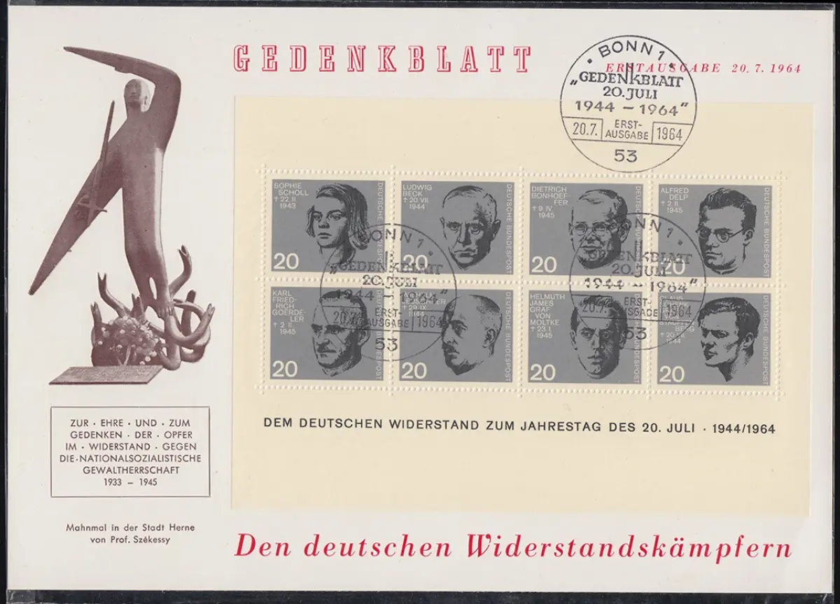 Block 3 Attentat 20. Juli 1944 - auf Schmuck-Gedenkblatt ESSt Bonn 20.7.1964