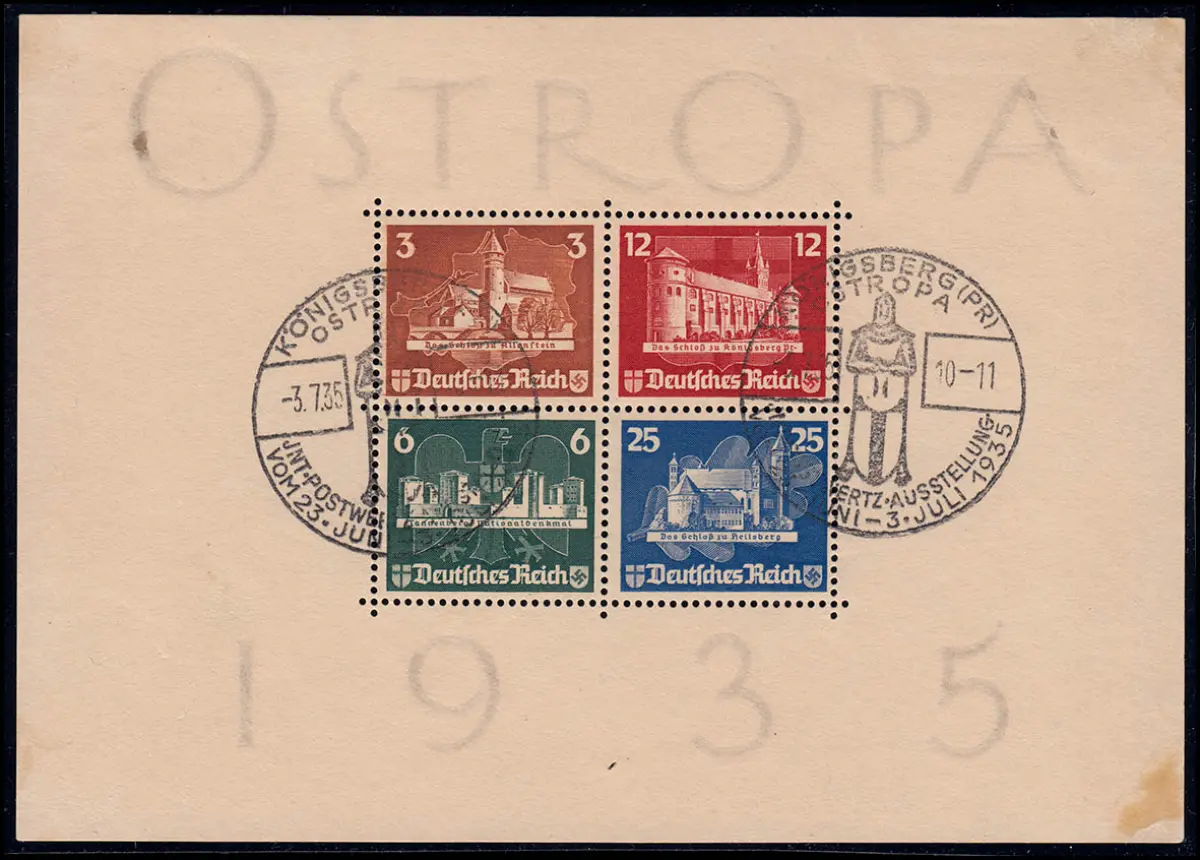 Block 3 OSTROPA - zwei passende Sonderstempel 3.7.35
