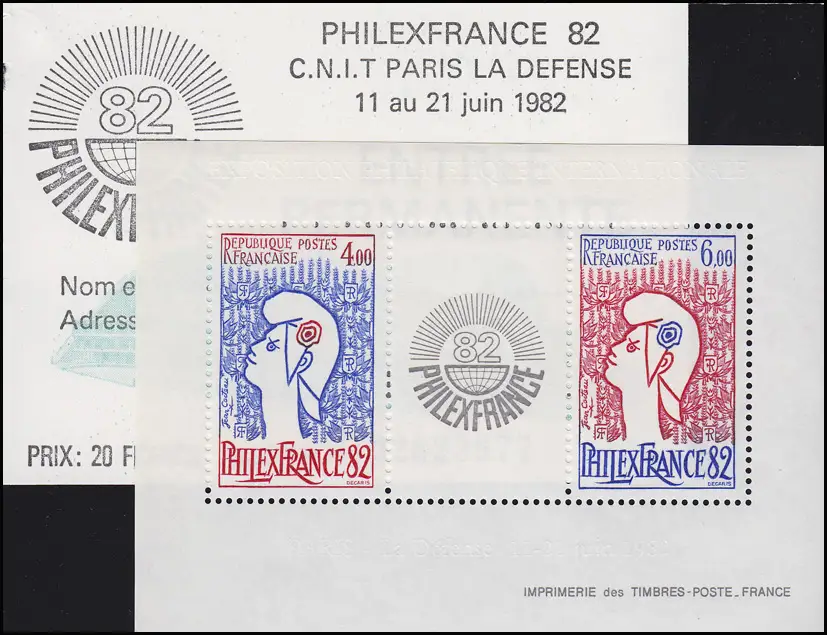 Bloc 6 Exposition des timbres PHILEXFRANCE Paris 1982 ** - avec billet