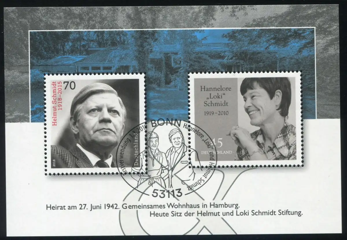 Block 83 Helmut und Loki Schmidt, Erstverwendunsstempel BONN 1.3.2019