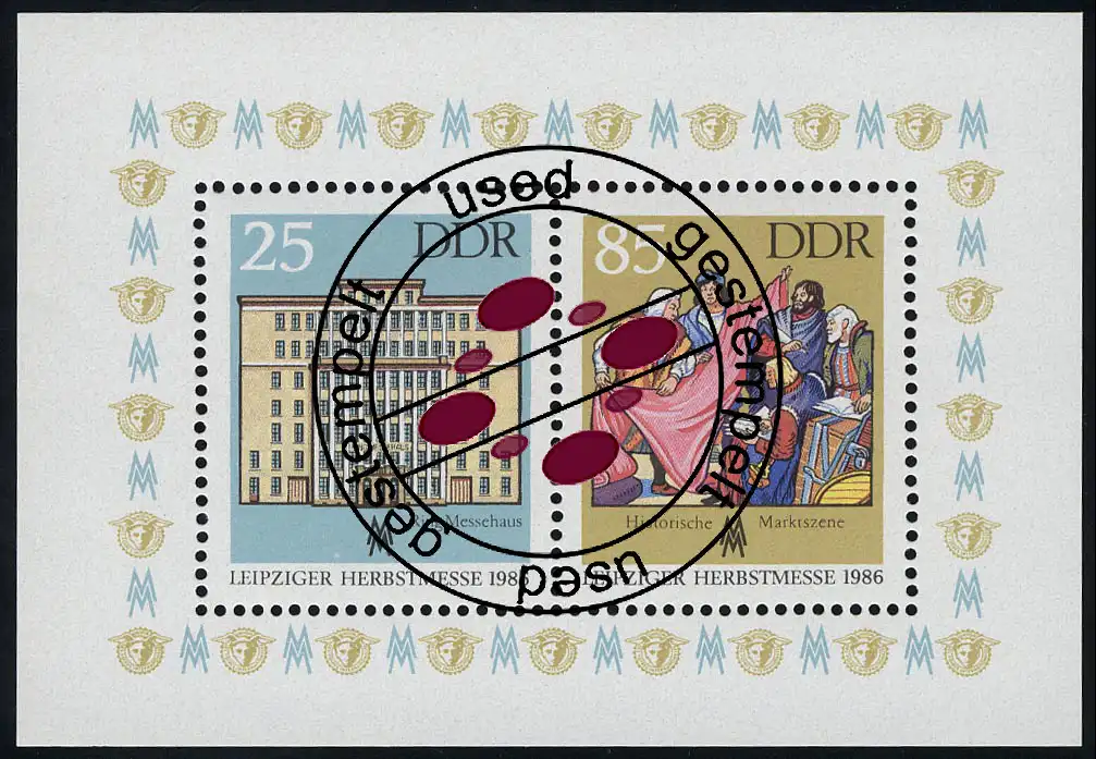 Block 85 Leipziger Messe d'automne 1986, avec cachet journalier