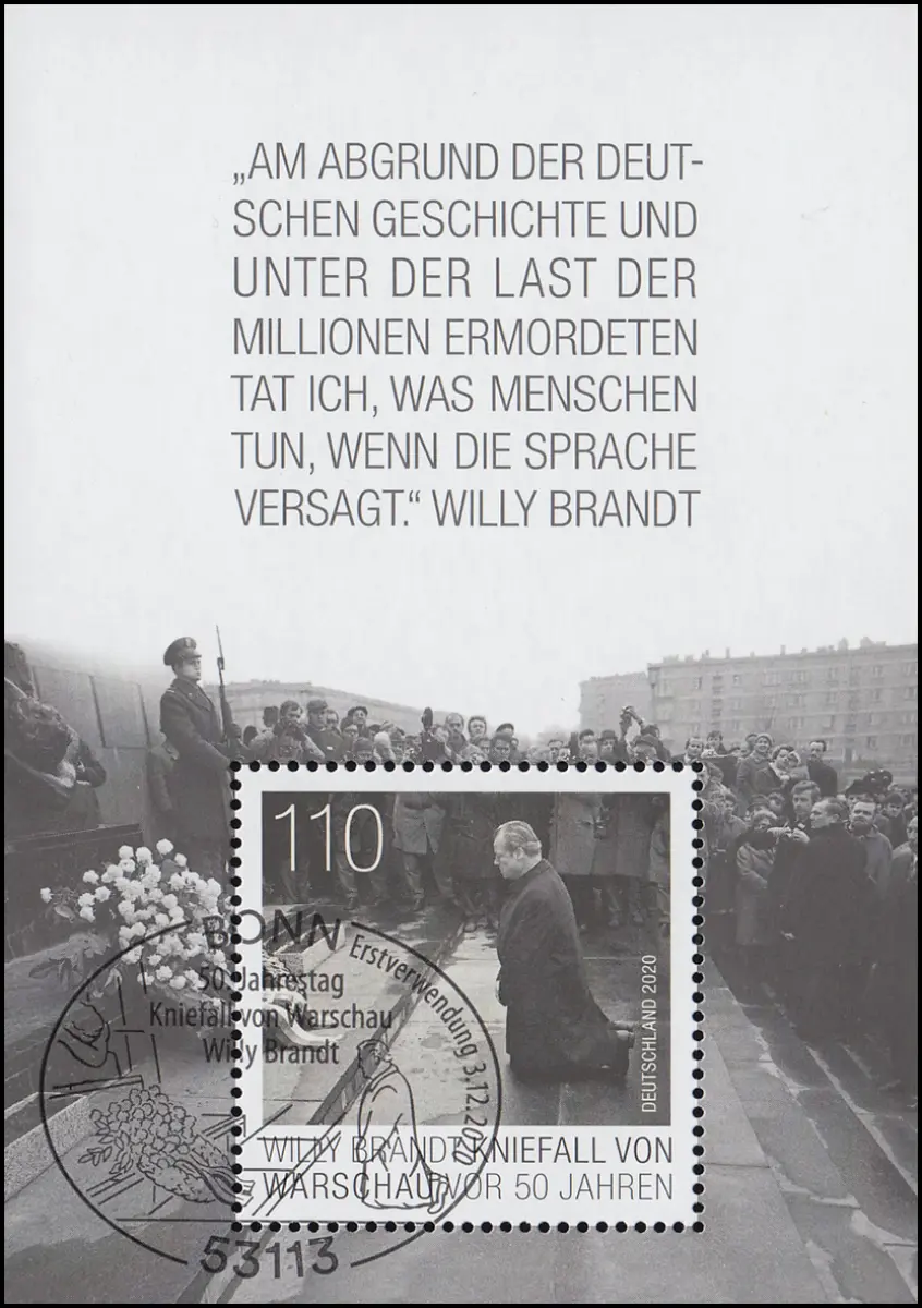 Block 87 Willy Brandt - Kniefall von Warschau, Erstverwendungsstempel BONN 2020