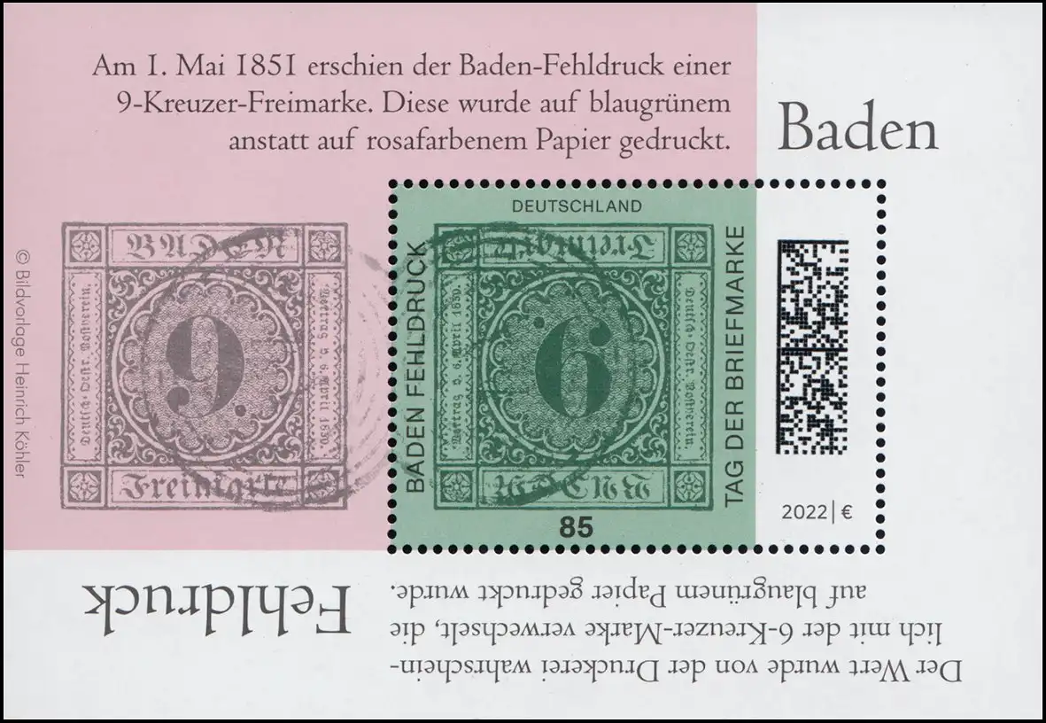 Bloc 90 Jour du timbre 2022 - Baden Erreur, frais de port **