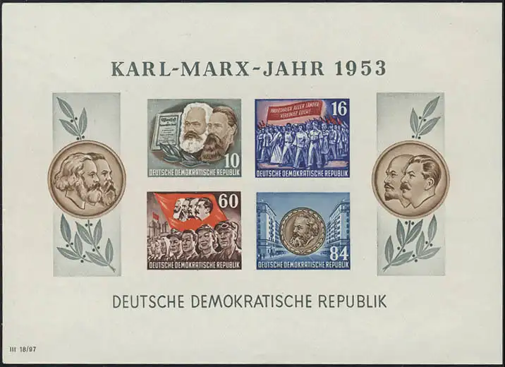 Bloc 9B YI Karl Marx 1953 non-denté, frais