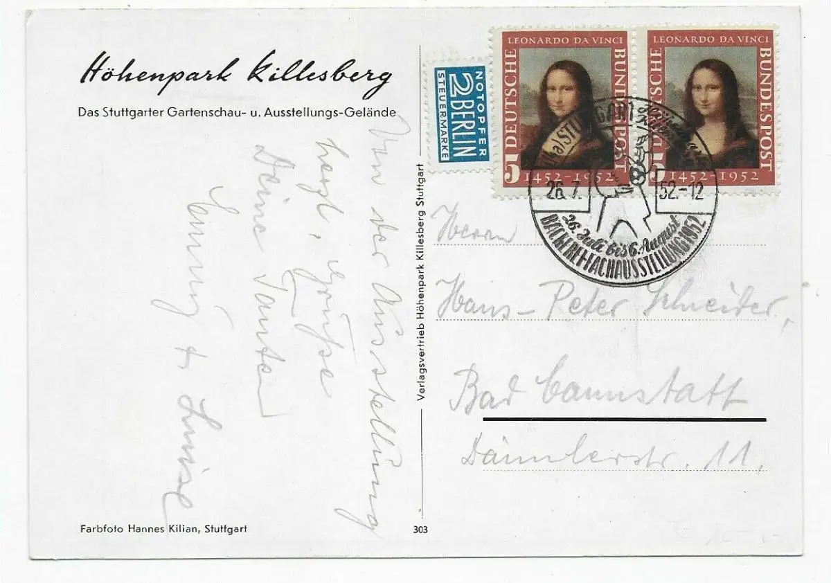 Blumengarten Carte de vue Stuttgart, Killesberg, 1952, Stamp spécial