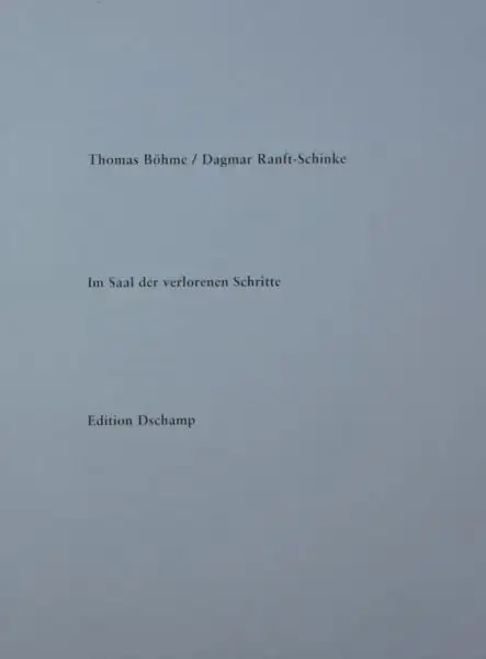 20 non bag. Bl. avec 7 graphiques originaux. Original de Dagmar Ranft-Schinke Bandeau en carton illustré . 41 x 31 cm. Exemlar numéroté et signé par Thomas Bohme et Dagnar Renft. Enveloppé d'une couverture minimale - en somme d ' un beau et propre exemplaire. L'édition de 1993 Dschamp a fondé Thomas Günther pour des raisons de première publication, ce qui explique son caractère expérimental. Les textes de la série sont publiés par des auteurs comme Thomas Brasch, Peter Bratsch, Eberhard Häfner, Pierre Wawerzinek, Gunter Kunert et Hein Müller.