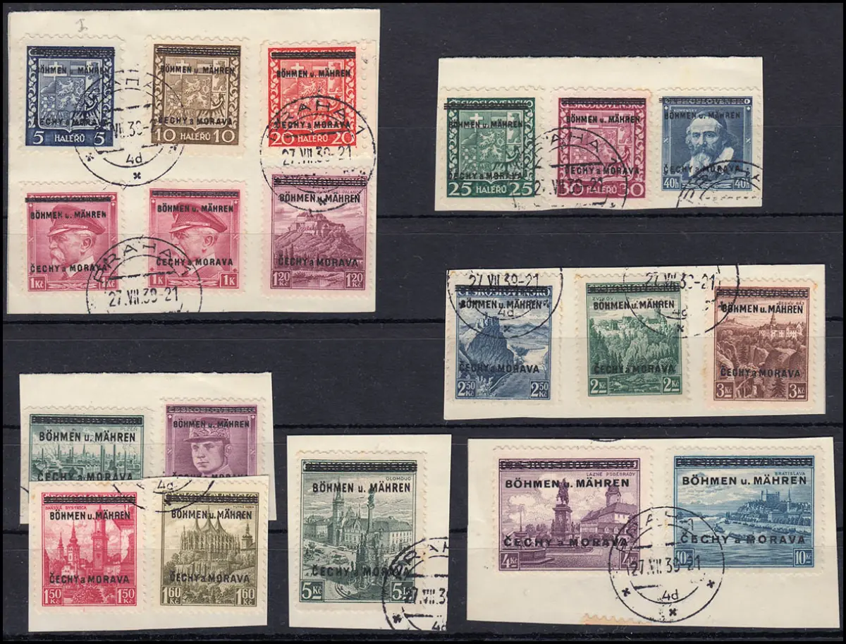 Böhmen und Mähren 1-19 Aufdruck-Satz O Prag / Praha 4d, 27.7.1939, Briefstücke