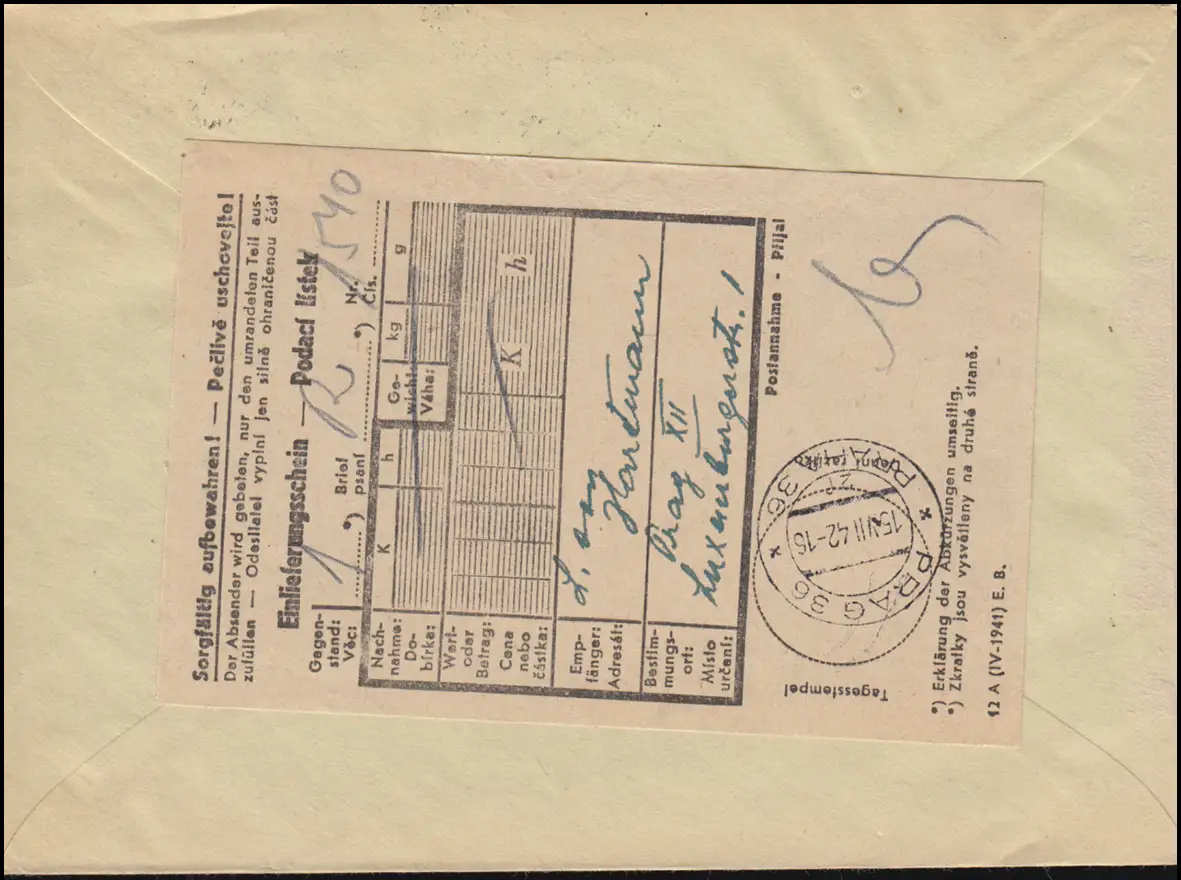 Laissez-nous vous donner le document PRAG 36 - 15.8.42, sans cachet d'arrivée Numéro de catalogue: 56+99 Vérification: original Référence produit: 00000000044198