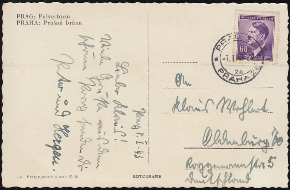 Bohême et Moravie Carte de vue Prague - Tour de poudre, PRAG / PRAHA 7.1.1943