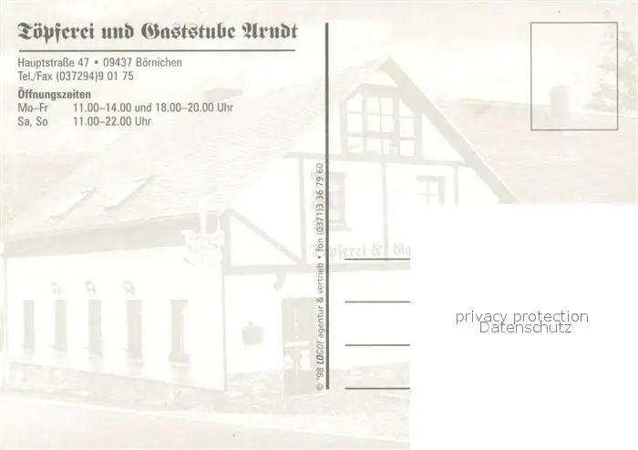 Boernichen_Erzgebirge Toepferei und Gaststube Arndt postalisch nicht gelaufen nach 1965 Erhaltung siehe scans [FriedD77] Frierer