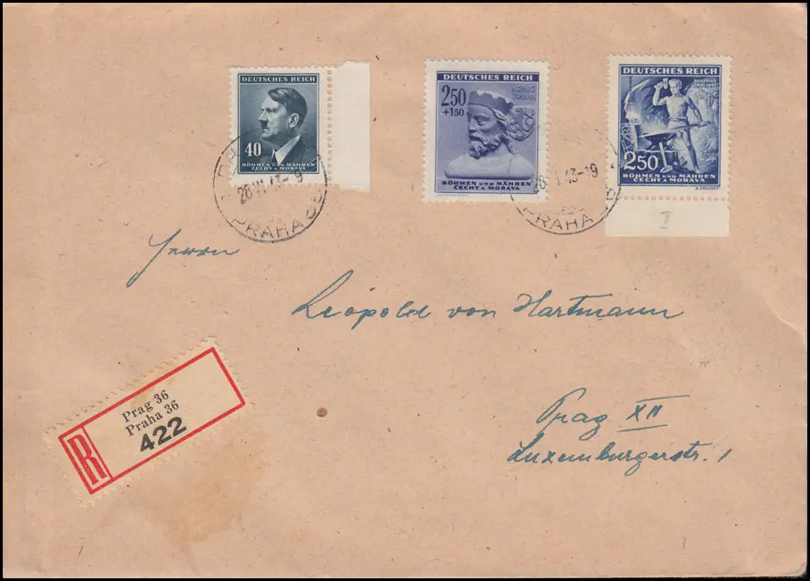 Bohême et Moravie: 116 WHW + 130 Wagner + Lettre R de ville PRAG 28.6.1943